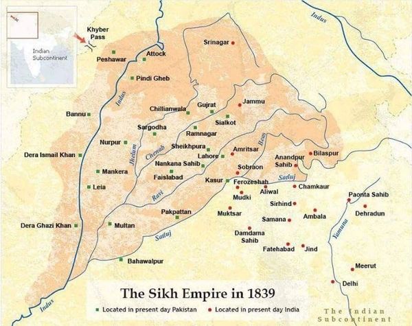 ਸਿੱਖ ਸਾਮਰਾਜ 1799 ਤੋਂ 1839 ਤੱਕ ਦਾ ਸਮਾਂ ਮਹਾਰਾਜਾ ਰਣਜੀਤ ਸਿੰਘ ਦੀ ਰਾਜਗਿਰੀ ਨਾਲ ਸੰਬੰਧਿਤ ਹੈ। 1799 ਵਿੱਚ ਉਨ੍ਹਾਂ ਨੇ ਲਾਹੌਰ ਤੇ ਕਬਜ਼ਾ ਕਰਕੇ ਸਿੱਖ ਰਾਜ ਦੀ ਸਥਾਪਨਾ ਕੀਤੀ। 1801 ਵਿੱਚ ਉਹਨਾਂ ਨੇ ਆਪਣੇ ਆਪ ਨੂੰ ਮਹਾਰਾਜਾ ਘੋਸ਼ਿਤ ਕੀਤਾ। ਇਸ ਦੌਰਾਨ ਪੰਜਾਬ, ਕਸ਼ਮੀਰ ਅਤੇ ਪੇਸ਼ਾਵਰ ਤੱਕ ਸਾਮਰਾਜ ਫੈਲਿਆ। ਰਣਜੀਤ ਸਿੰਘ ਨੇ ਮਜ਼ਬੂਤ ਫੌਜ ਬਣਾਈ ਅਤੇ ਯੂਰਪੀ ਅਧਿਕਾਰੀਆਂ ਦੀ ਮਦਦ ਨਾਲ ਉਸ ਨੂੰ ਆਧੁਨਿਕ ਬਣਾਇਆ। ਧਰਮਨਿਰਪੇਖ ਨੀਤੀ ਅਪਣਾਈ ਗਈ, ਜਿਸ ਨਾਲ ਸਾਰੇ ਧਰਮਾਂ ਨੂੰ ਆਜ਼ਾਦੀ ਮਿਲੀ। 1839 ਵਿੱਚ ਰਣਜੀਤ ਸਿੰਘ ਦੀ ਮੌਤ ਤੋਂ ਬਾਅਦ ਸਾਮਰਾਜ ਕਮਜ਼ੋਰ ਹੋ ਗਿਆ।